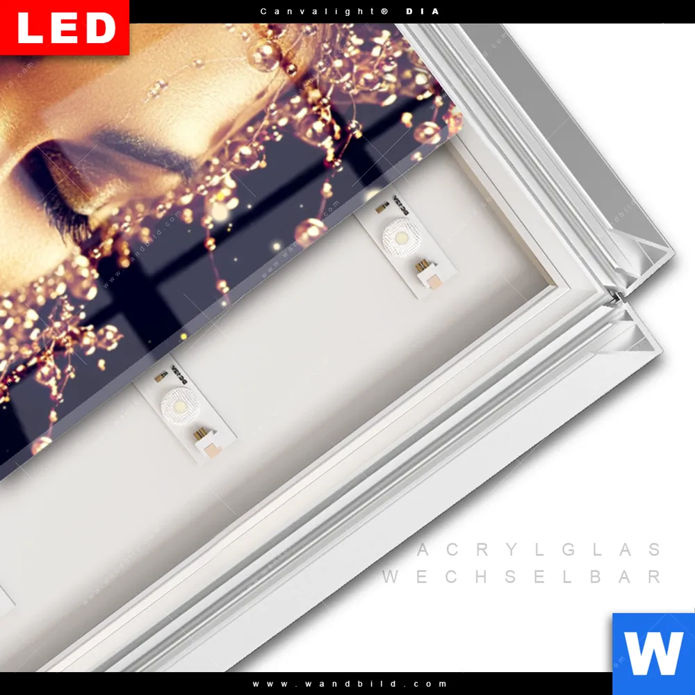 LED-Glasbild mit austauschbarem Acrylglas-Druck (Wechselbild)