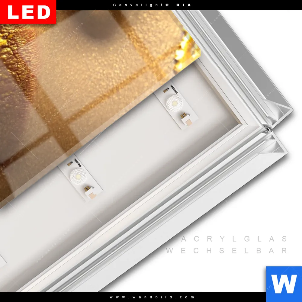 LED-Glasbild mit austauschbarem Acrylglas-Druck (Wechselbild)