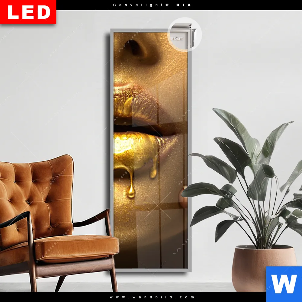 Canvalight® DIA Leuchtbild | Goldene Lippen | Schmal