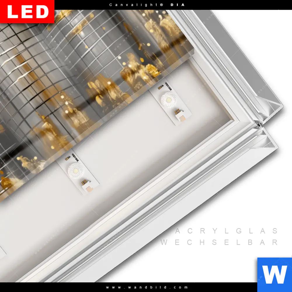 LED-Glasbild mit austauschbarem Acrylglas-Druck (Wechselbild)