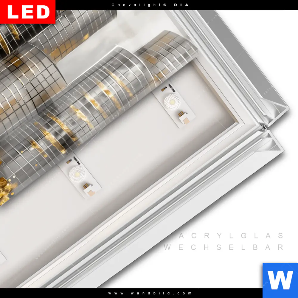 LED-Glasbild mit austauschbarem Acrylglas-Druck (Wechselbild)