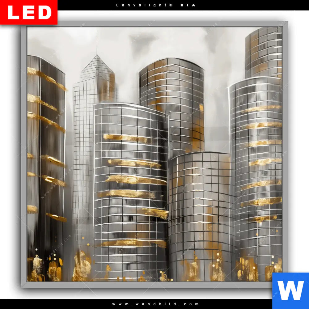 Canvalight® DIA Leuchtbild | Goldene Skyline Vision | Quadrat