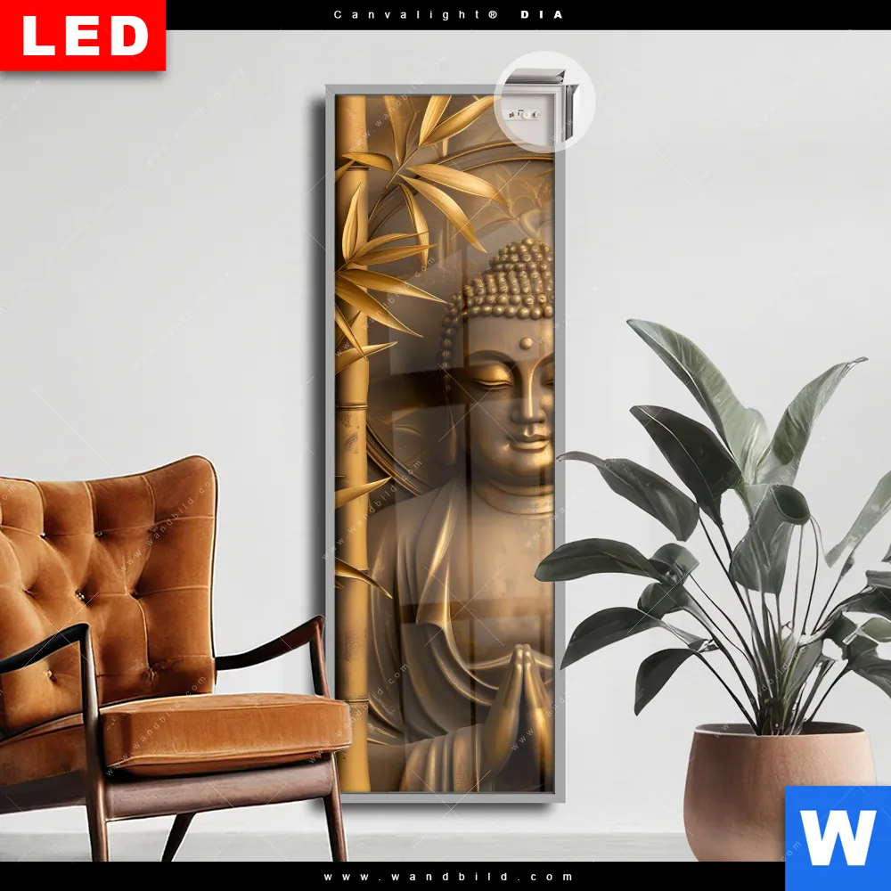 Canvalight® DIA Leuchtbild | Goldener Buddha im Bambuswald | Schmal