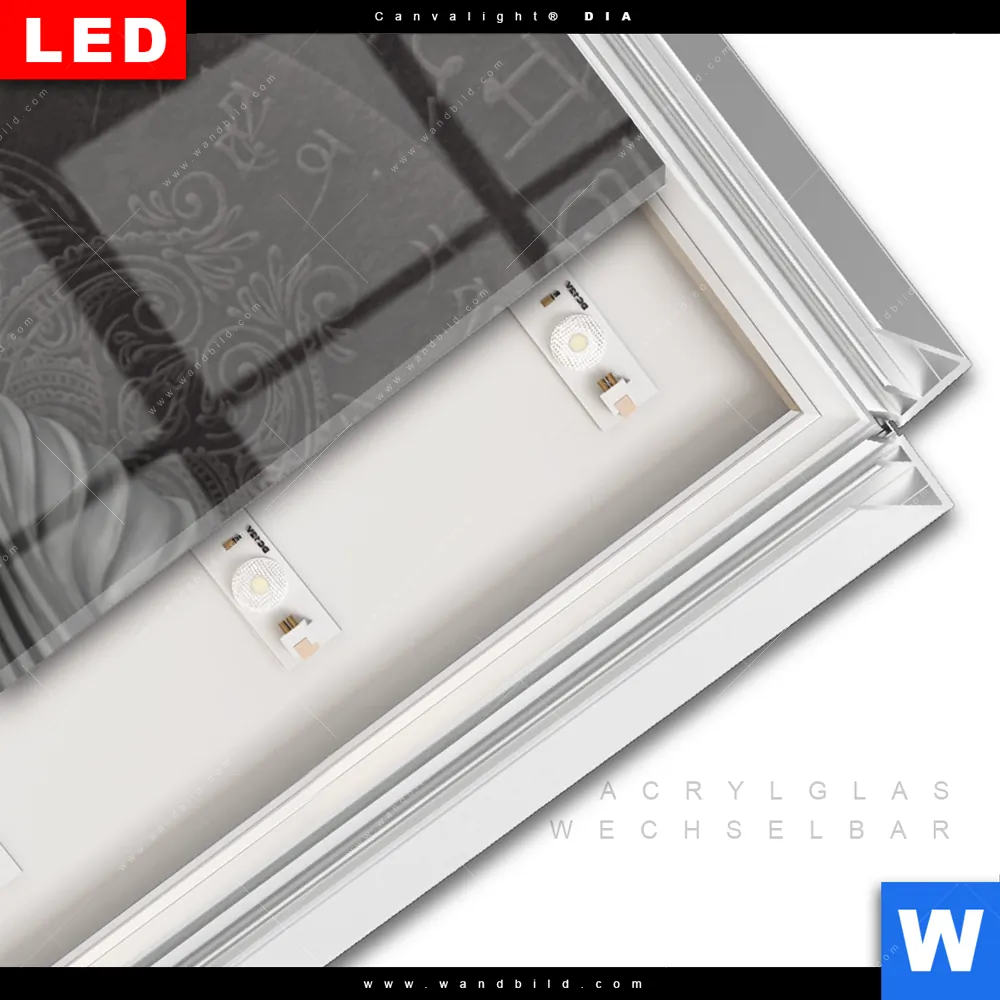 LED-Glasbild mit austauschbarem Acrylglas-Druck (Wechselbild)