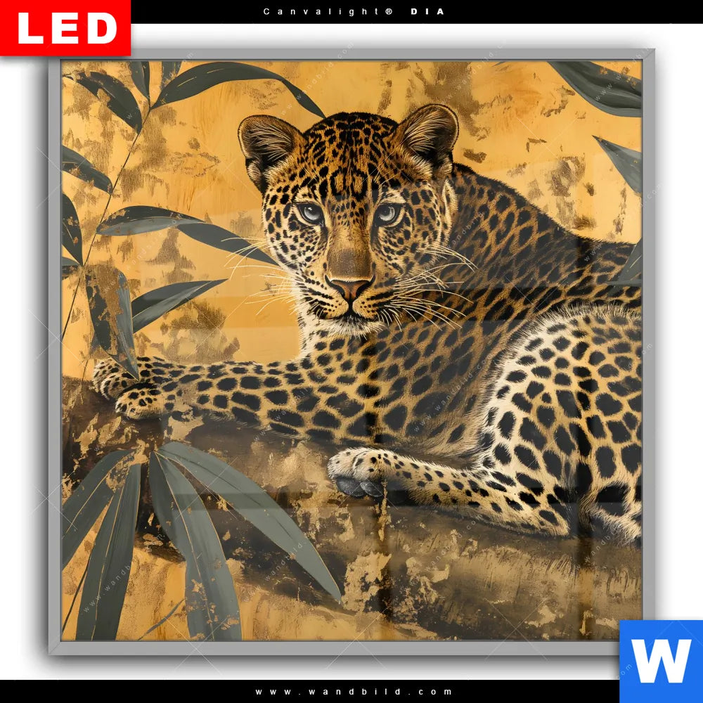 Canvalight® DIA Leuchtbild | Goldener Leopard - Imposanter Jäger | Quadrat