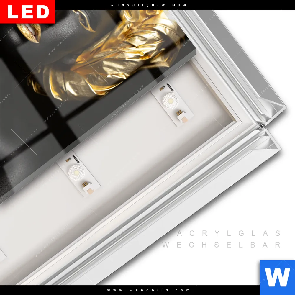 LED-Glasbild mit austauschbarem Acrylglas-Druck (Wechselbild)