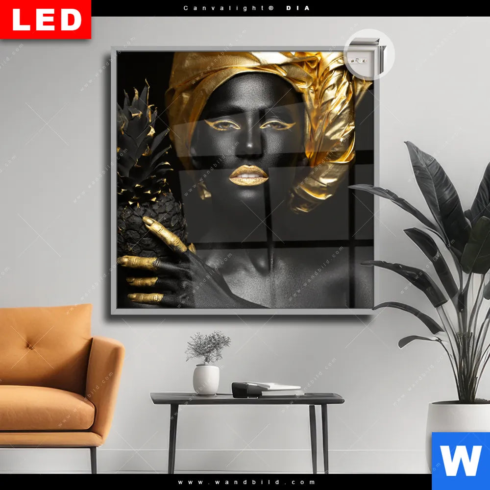 Canvalight® DIA Leuchtbild | Goldenes Ananasmädchen No.1 | Quadrat