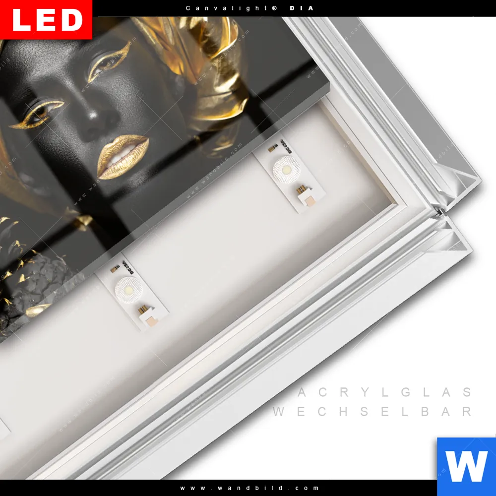 LED-Glasbild mit austauschbarem Acrylglas-Druck (Wechselbild)