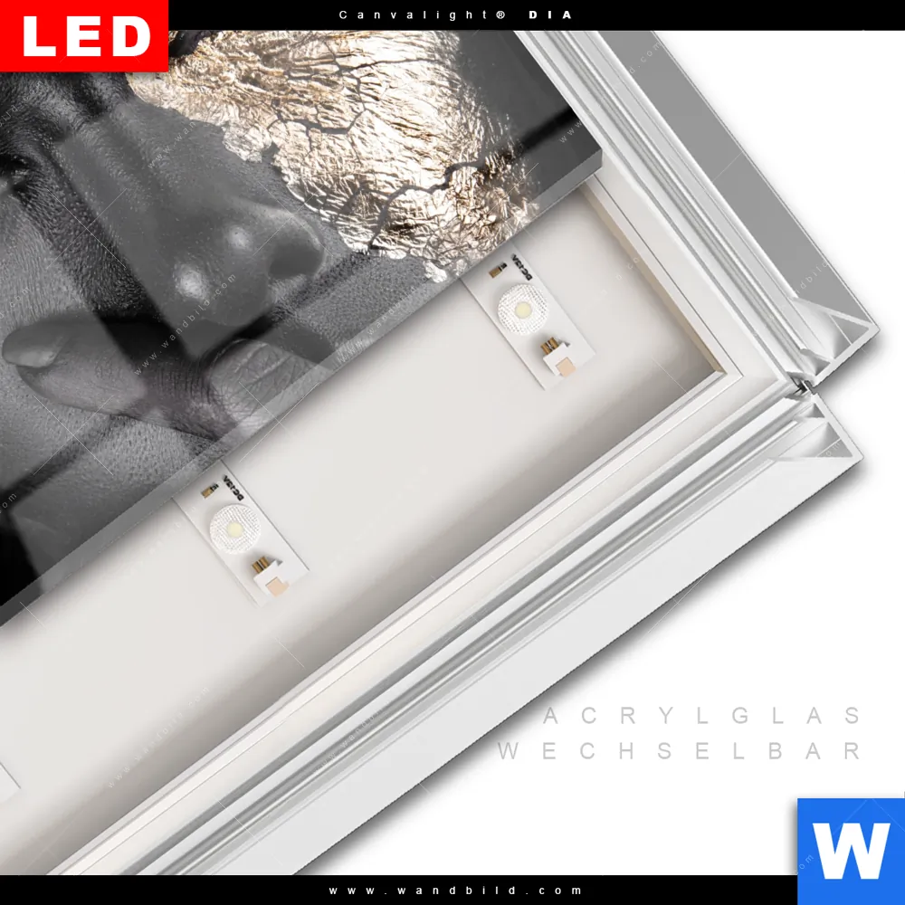 LED-Glasbild mit austauschbarem Acrylglas-Druck (Wechselbild)