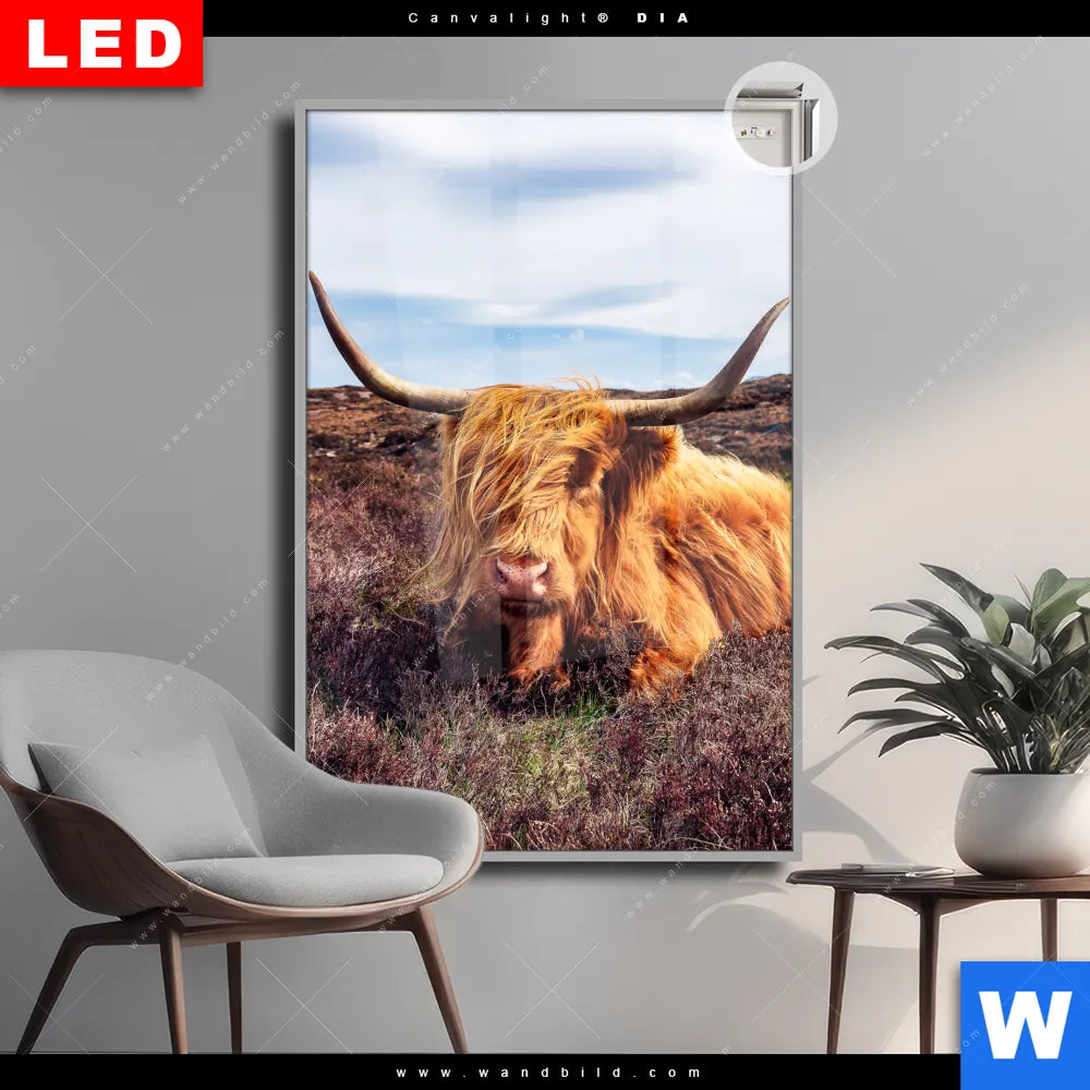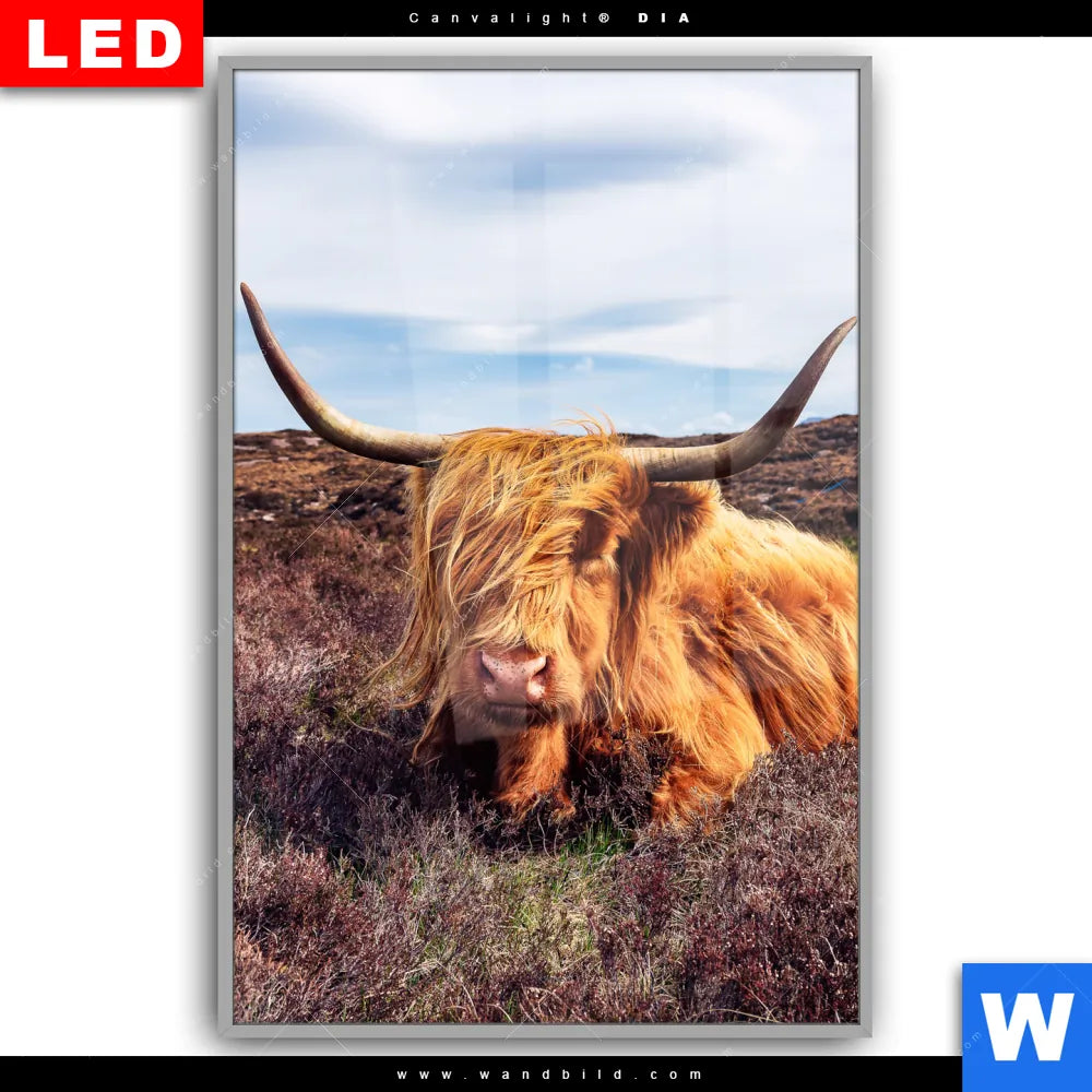 Canvalight® DIA Leuchtbild | Grasendes Hochlandrind | Hochformat