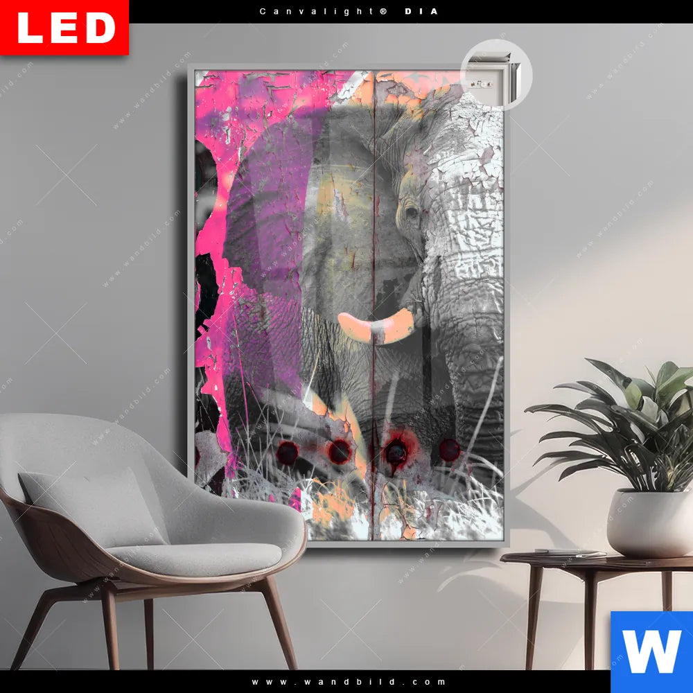 Canvalight® DIA Leuchtbild | Grunge Elefant | Hochformat