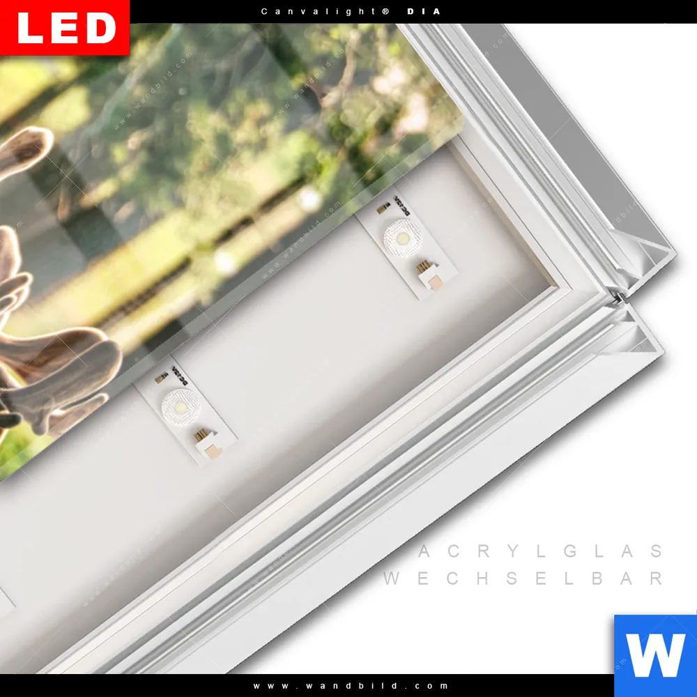 LED-Glasbild mit austauschbarem Acrylglas-Druck (Wechselbild)