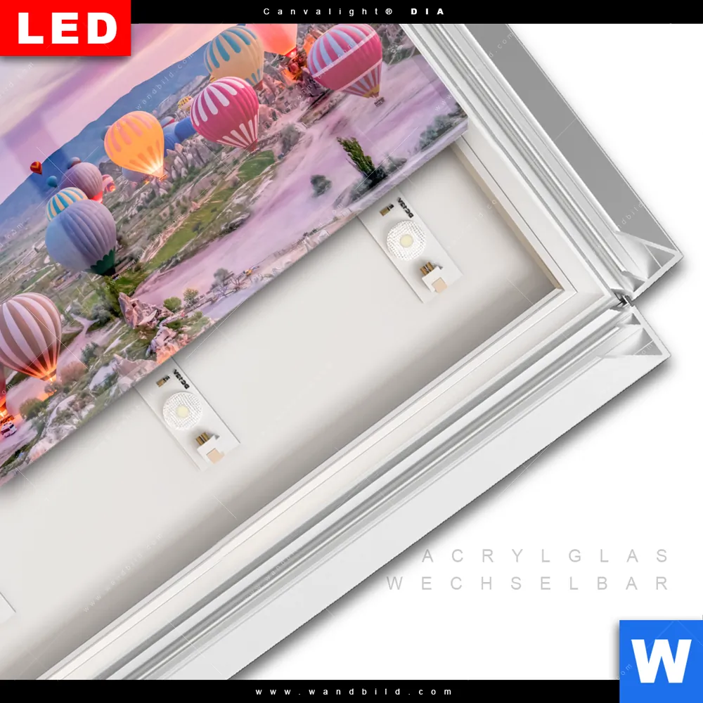 Canvalight® DIA Leuchtbild | Heißluftballons im Sonnenuntergang | Querformat