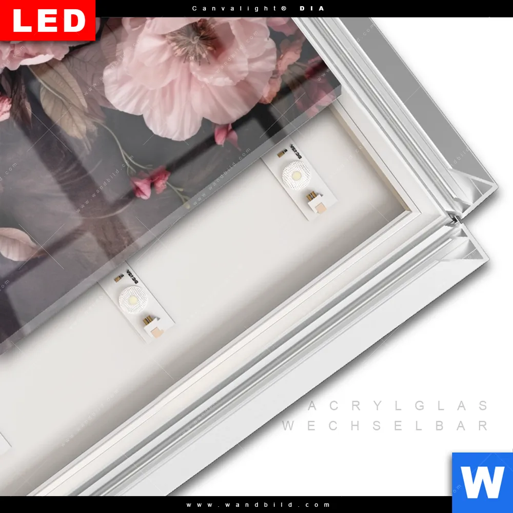 LED-Glasbild mit austauschbarem Acrylglas-Druck (Wechselbild)