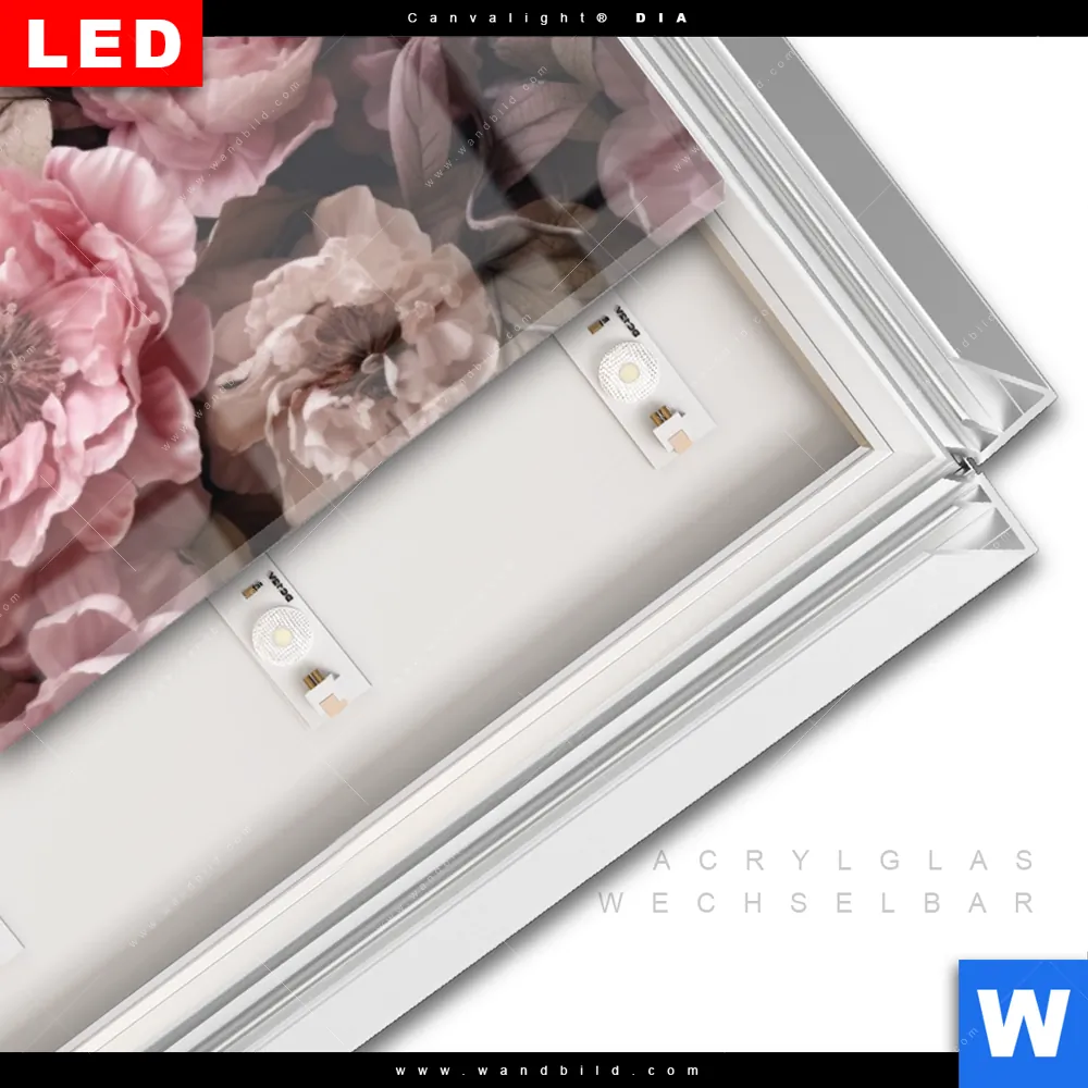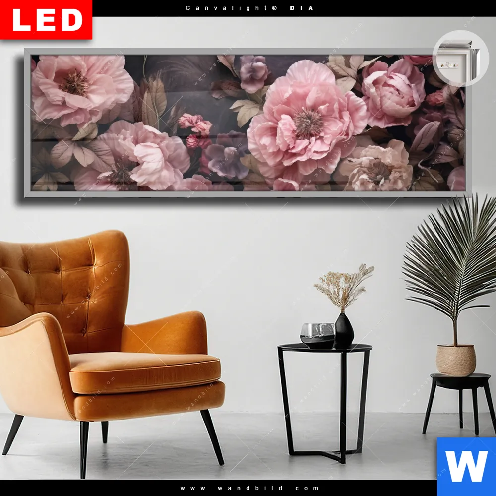 Canvalight® DIA Leuchtbild | Hellrosa Blumen | Panorama