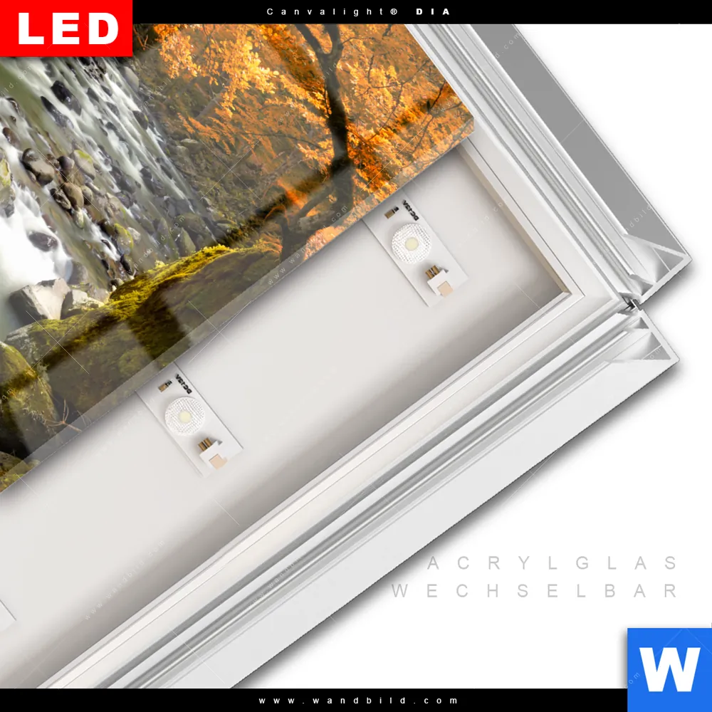 LED-Glasbild mit austauschbarem Acrylglas-Druck (Wechselbild)