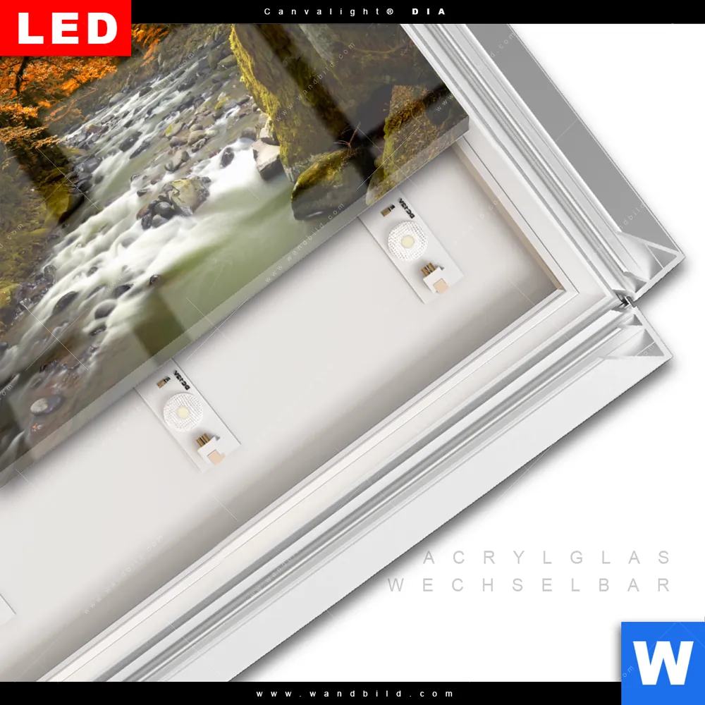 LED-Glasbild mit austauschbarem Acrylglas-Druck (Wechselbild)