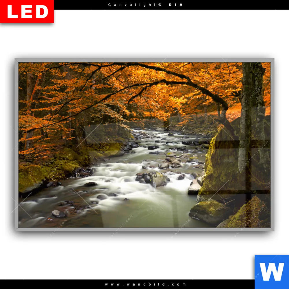 Canvalight® DIA Leuchtbild | Herbstlandschaft am Fluss | Querformat