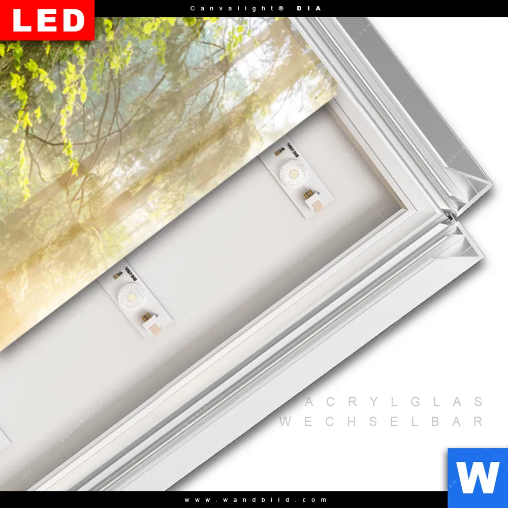 LED-Glasbild mit austauschbarem Acrylglas-Druck (Wechselbild)