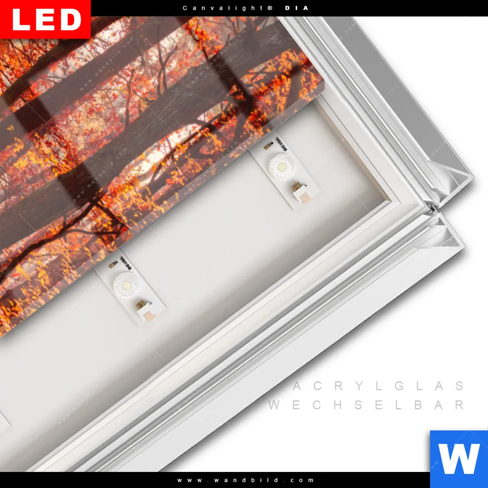 LED-Glasbild mit austauschbarem Acrylglas-Druck (Wechselbild)