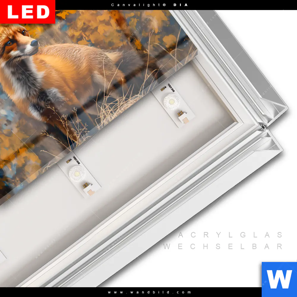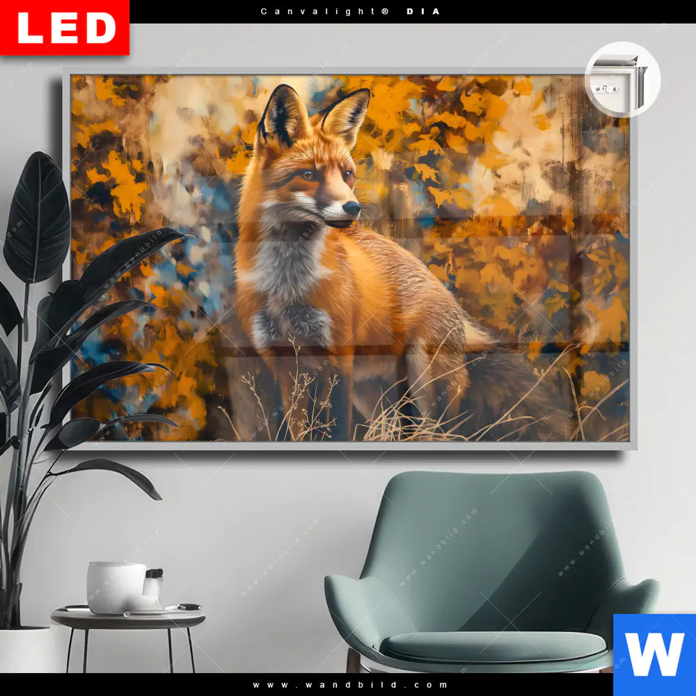 Canvalight® DIA Leuchtbild | Herbstzeit mit Rotfuchs | Querformat