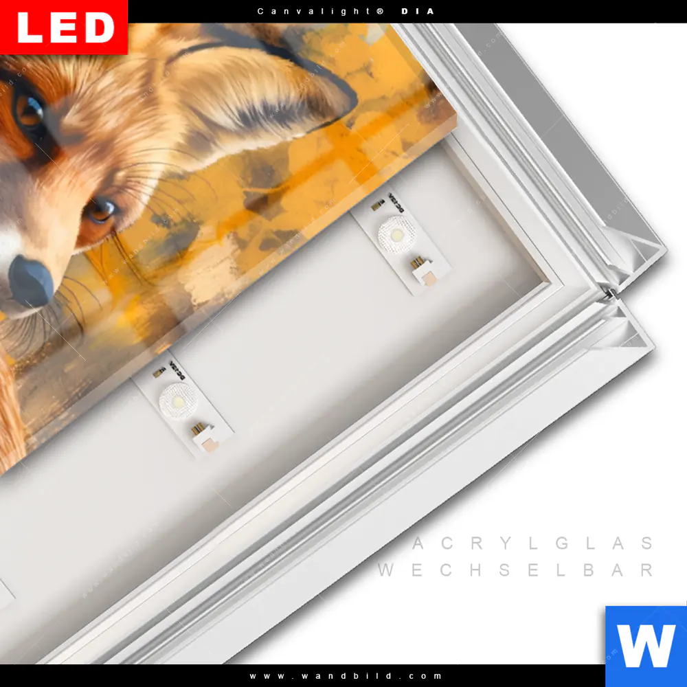 LED-Glasbild mit austauschbarem Acrylglas-Druck (Wechselbild)