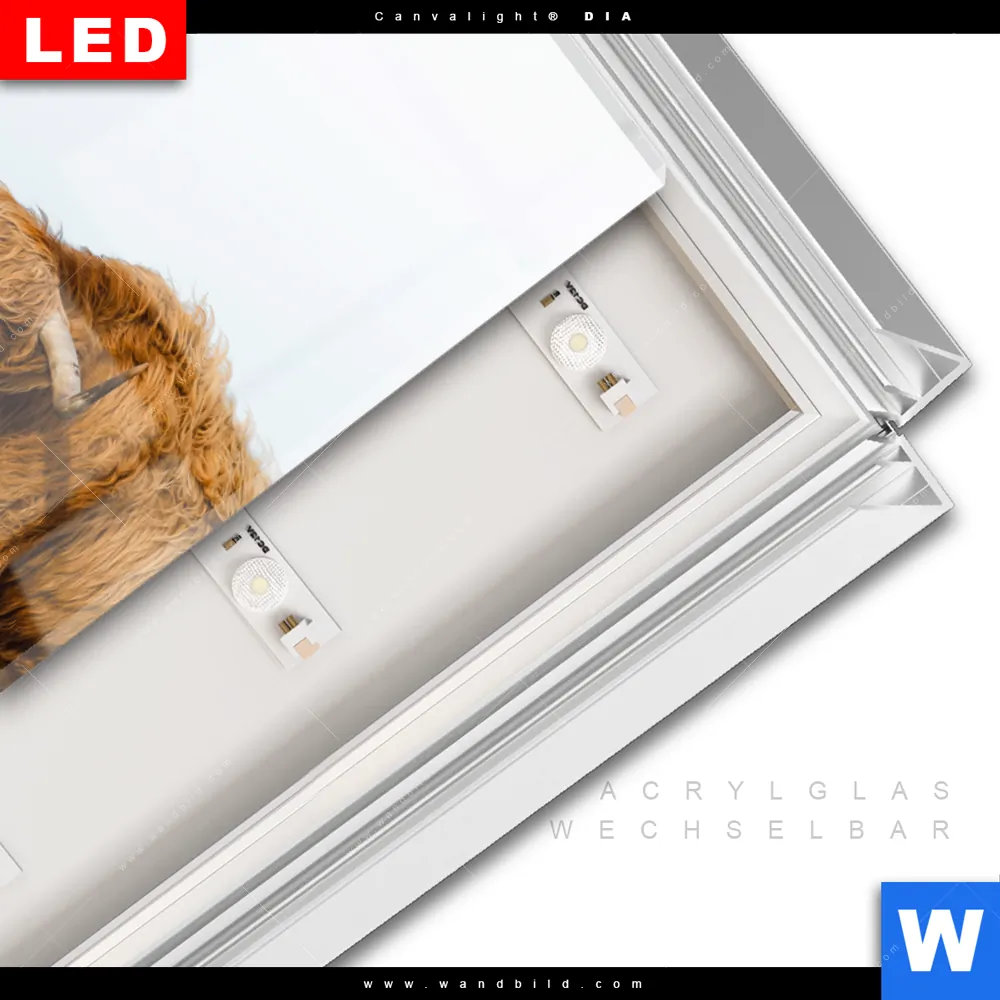 LED-Glasbild mit austauschbarem Acrylglas-Druck (Wechselbild)
