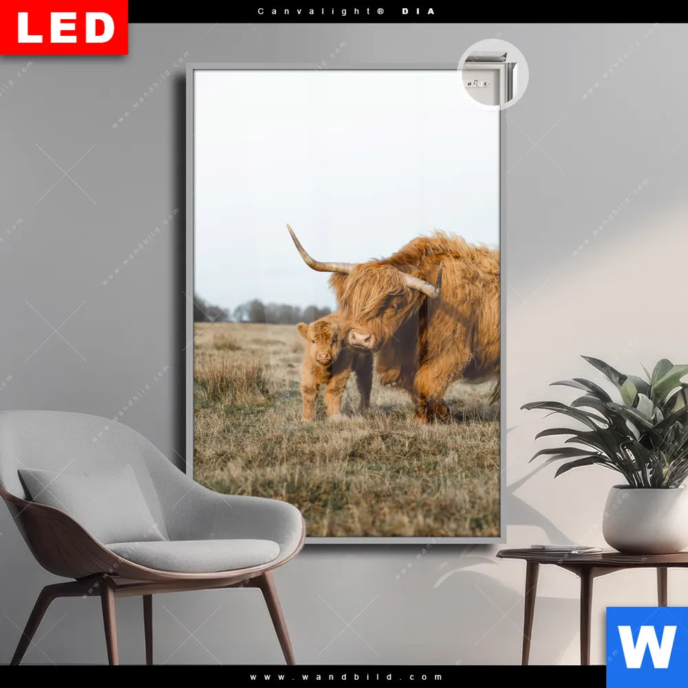 Canvalight® DIA Leuchtbild | Highlander Familie | Hochformat