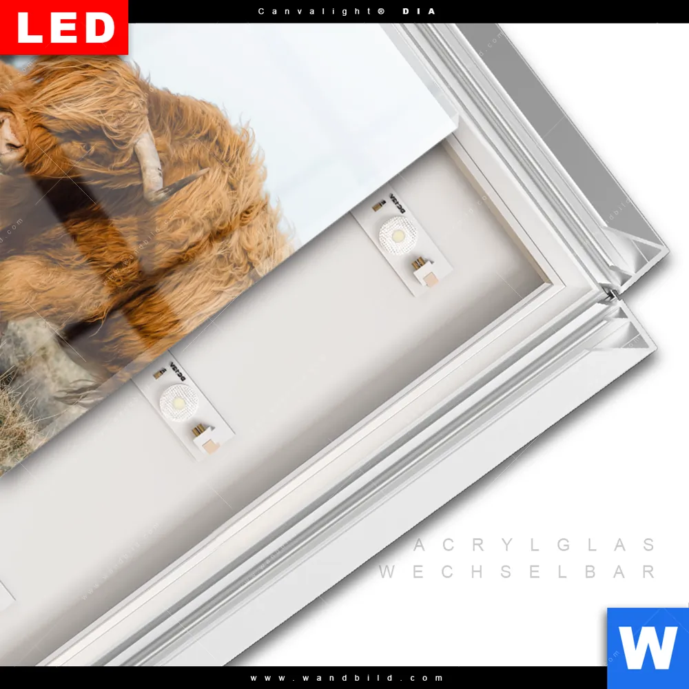 LED-Glasbild mit austauschbarem Acrylglas-Druck (Wechselbild)