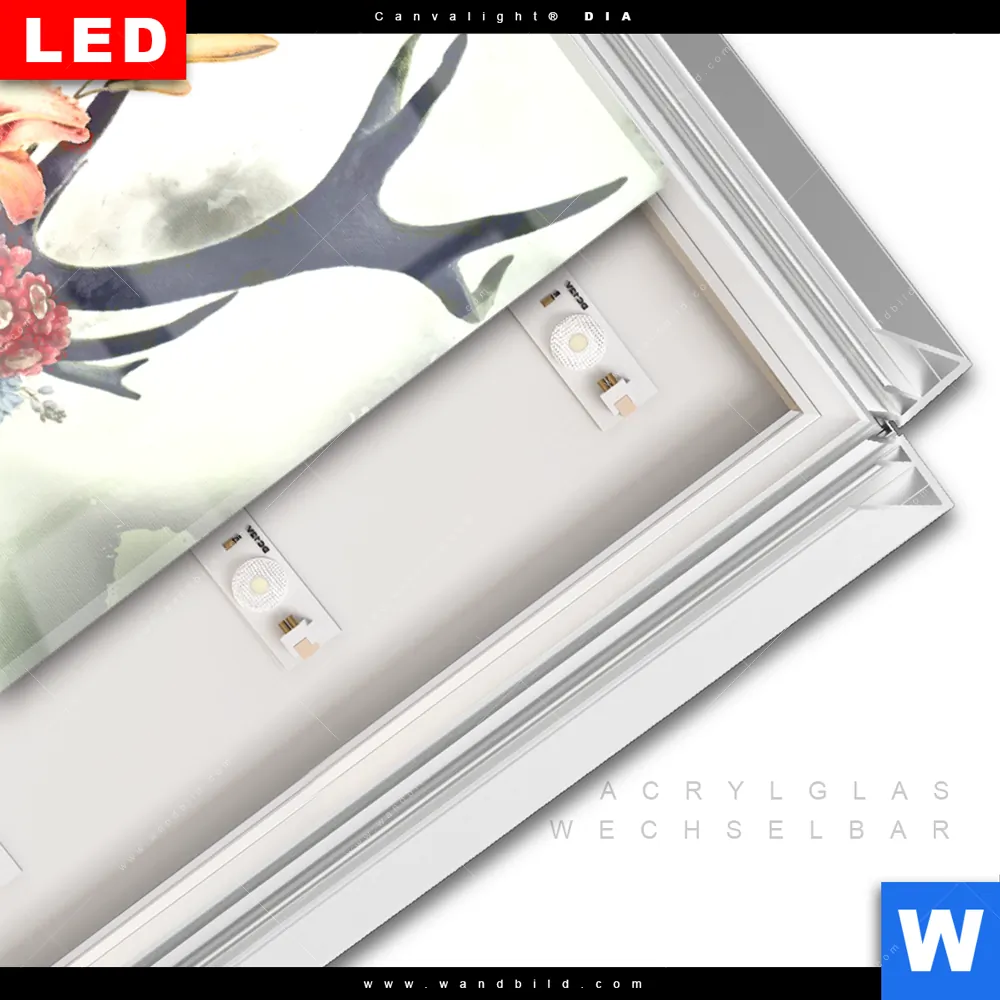 LED-Glasbild mit austauschbarem Acrylglas-Druck (Wechselbild)