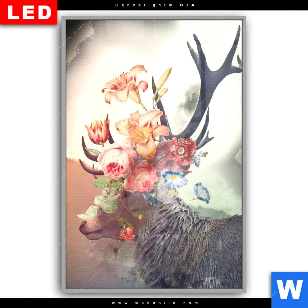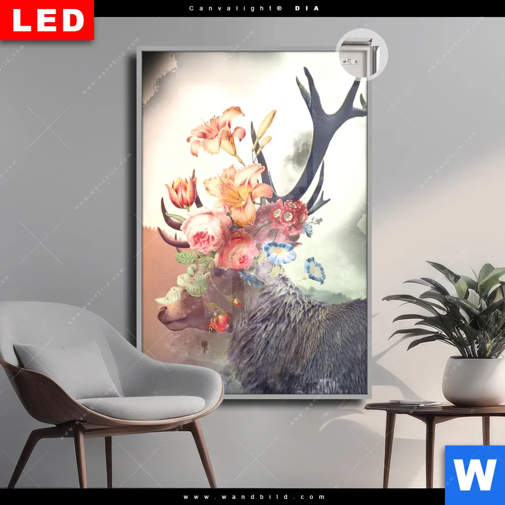 Canvalight® DIA Leuchtbild | Hirsch & Blumen | Hochformat