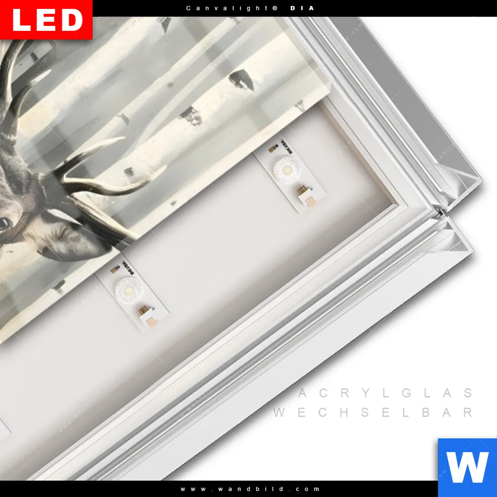 LED-Glasbild mit austauschbarem Acrylglas-Druck (Wechselbild)