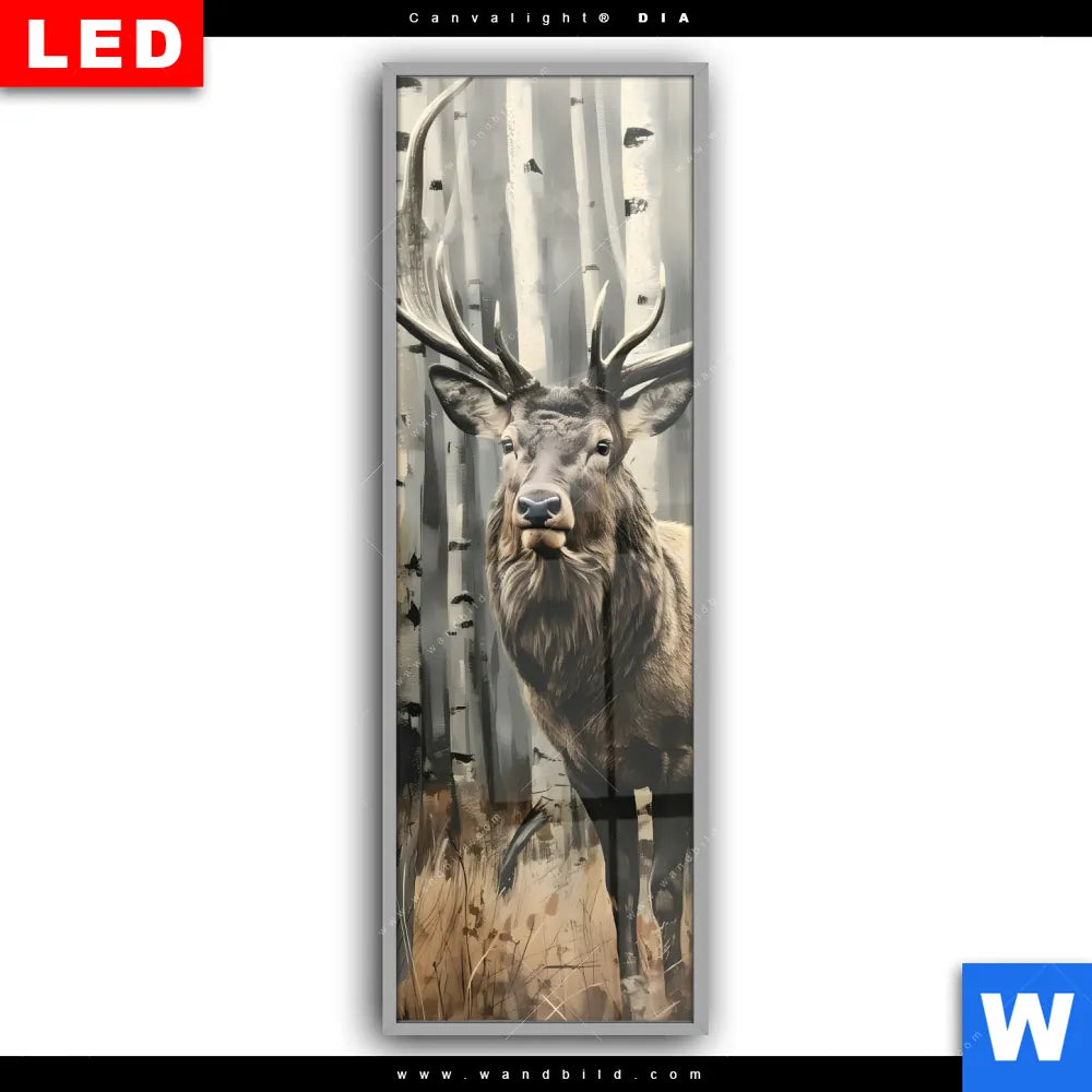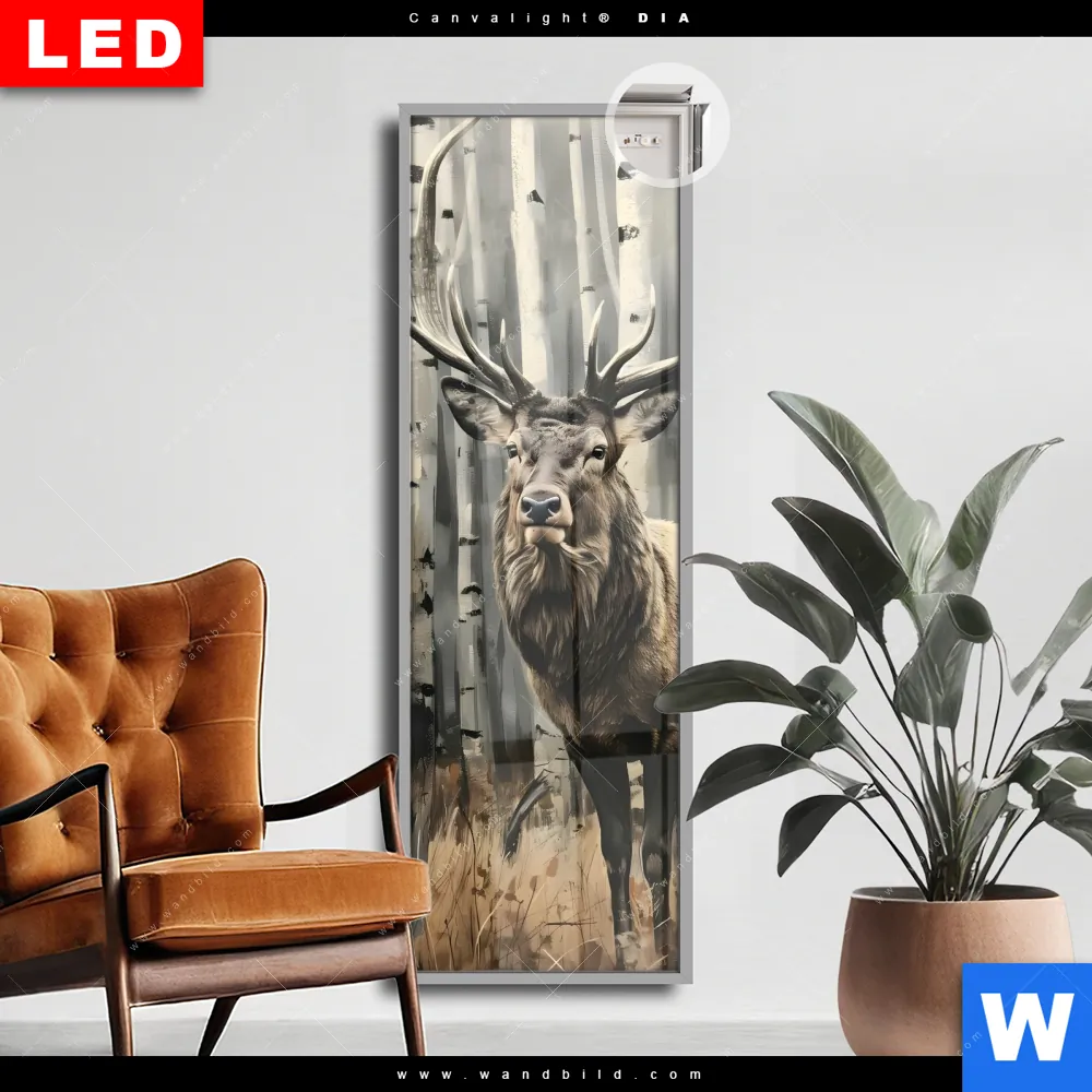Canvalight® DIA Leuchtbild | Hirsch im Birkenwald | Schmal