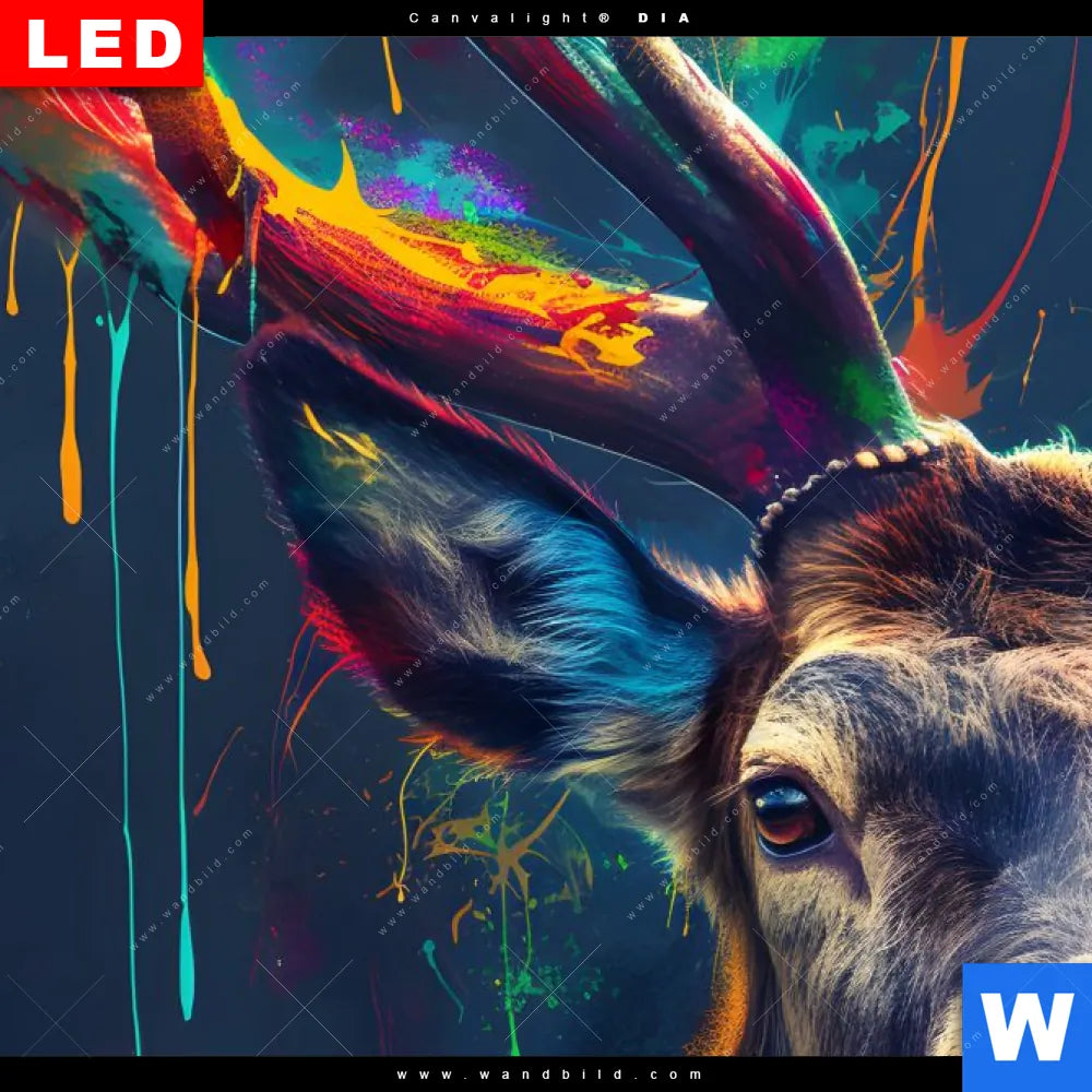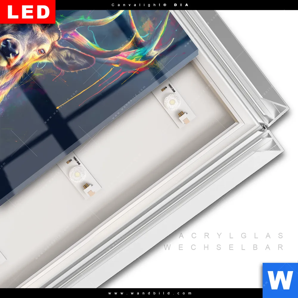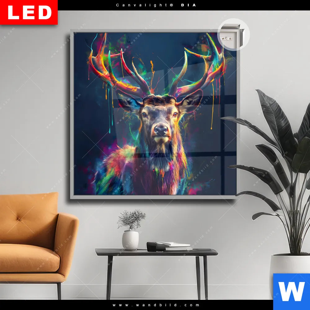 Canvalight® DIA Leuchtbild | Hirsch im leuchtenden Farbmix | Quadrat