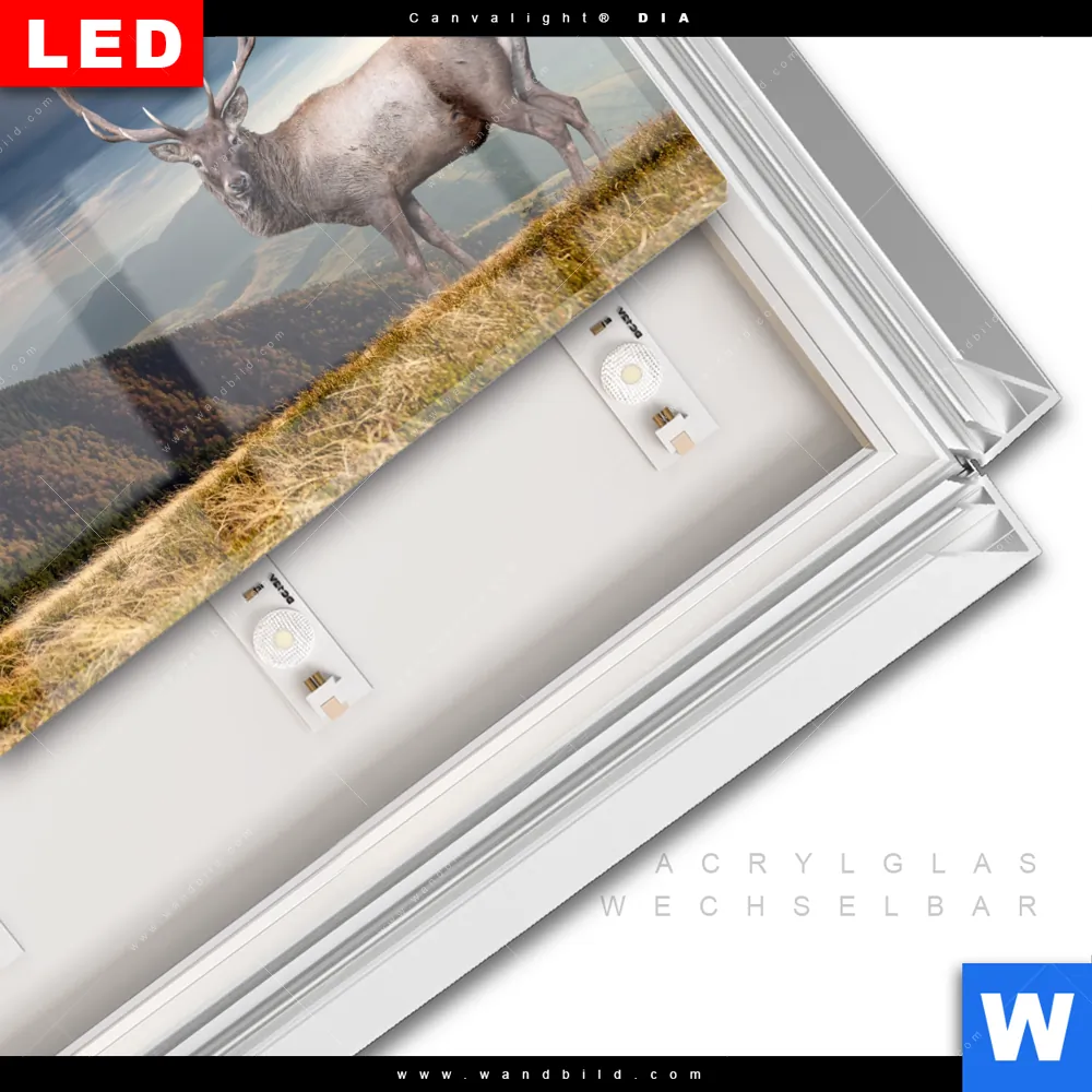 LED | Wechselrahmen-System | Acrylglas-Wechselbilder | DIA-Klapprahmen-Funktion