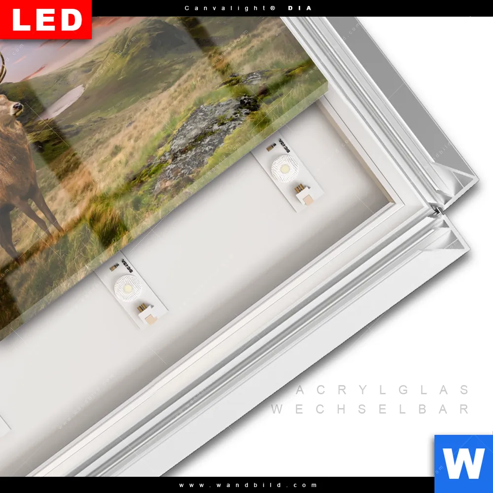 LED-Glasbild mit austauschbarem Acrylglas-Druck (Wechselbild)