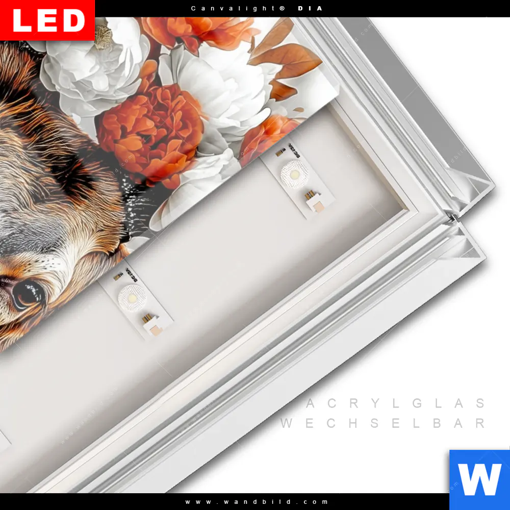 LED-Glasbild mit austauschbarem Acrylglas-Druck (Wechselbild)
