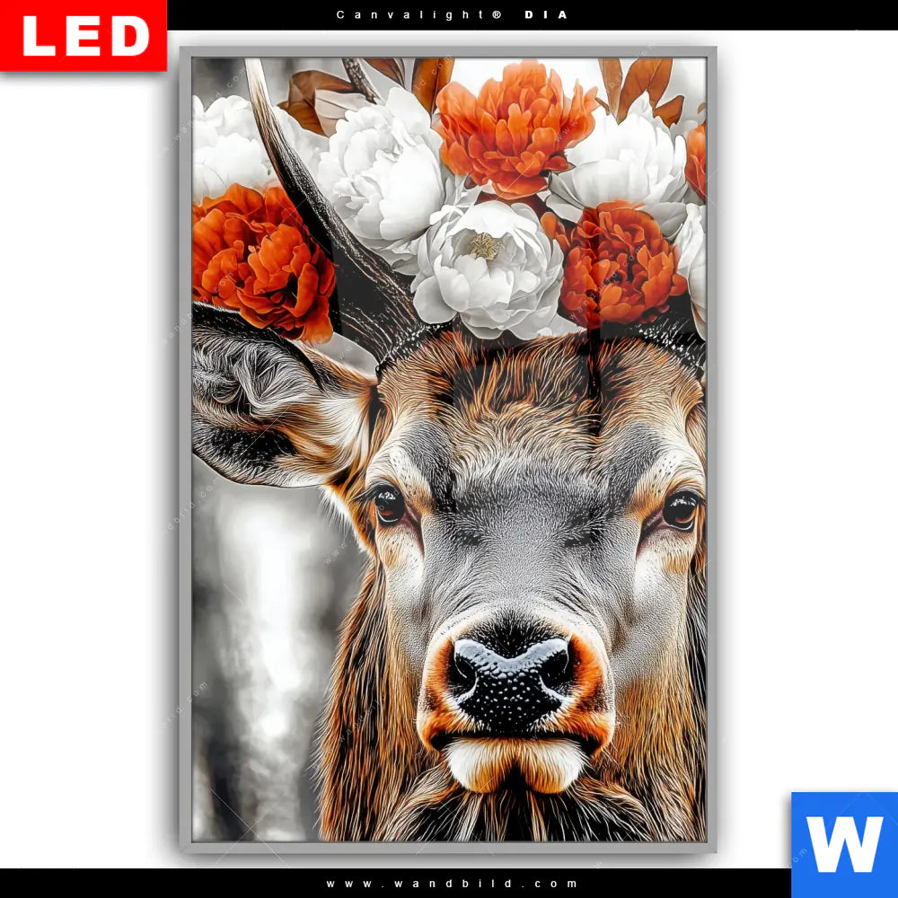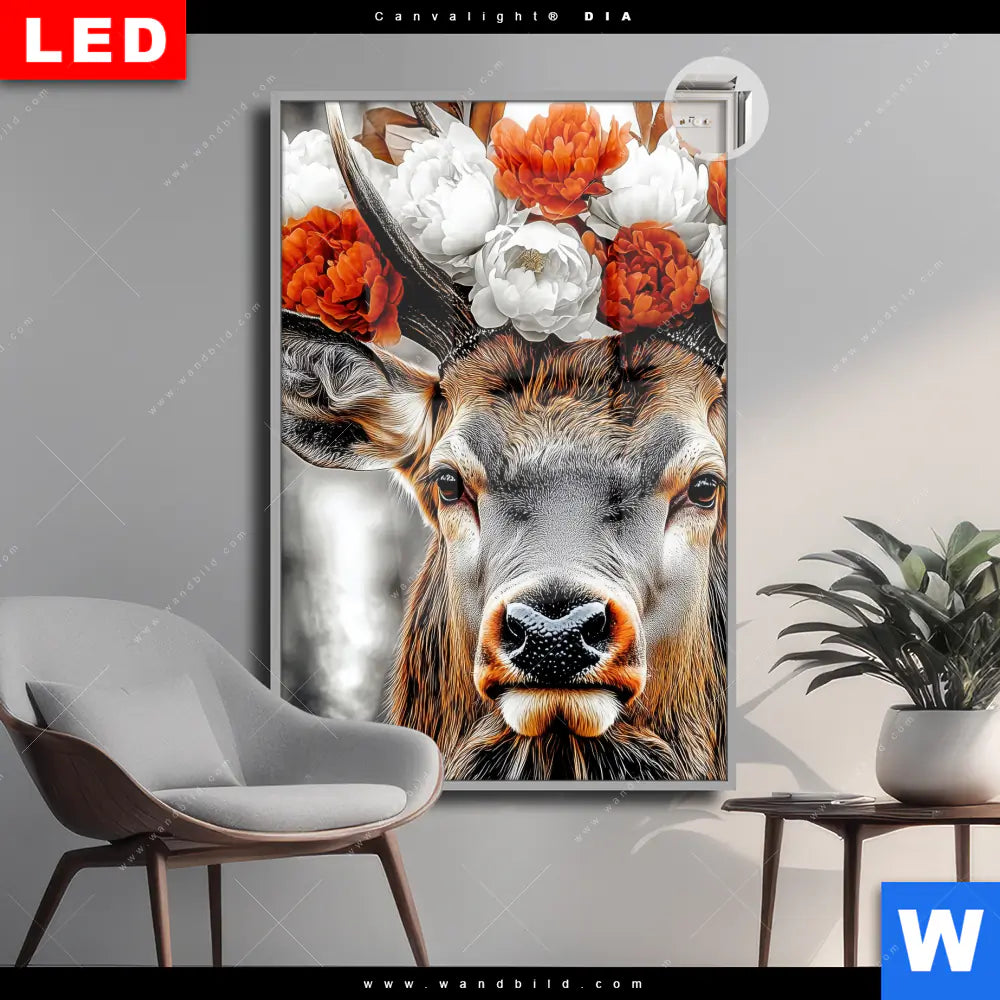 Canvalight® DIA Leuchtbild | Hirsch mit Blumenkrone | Hochformat