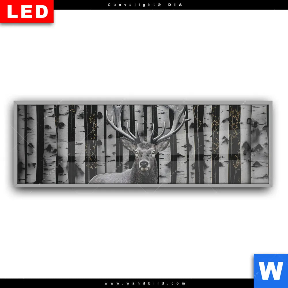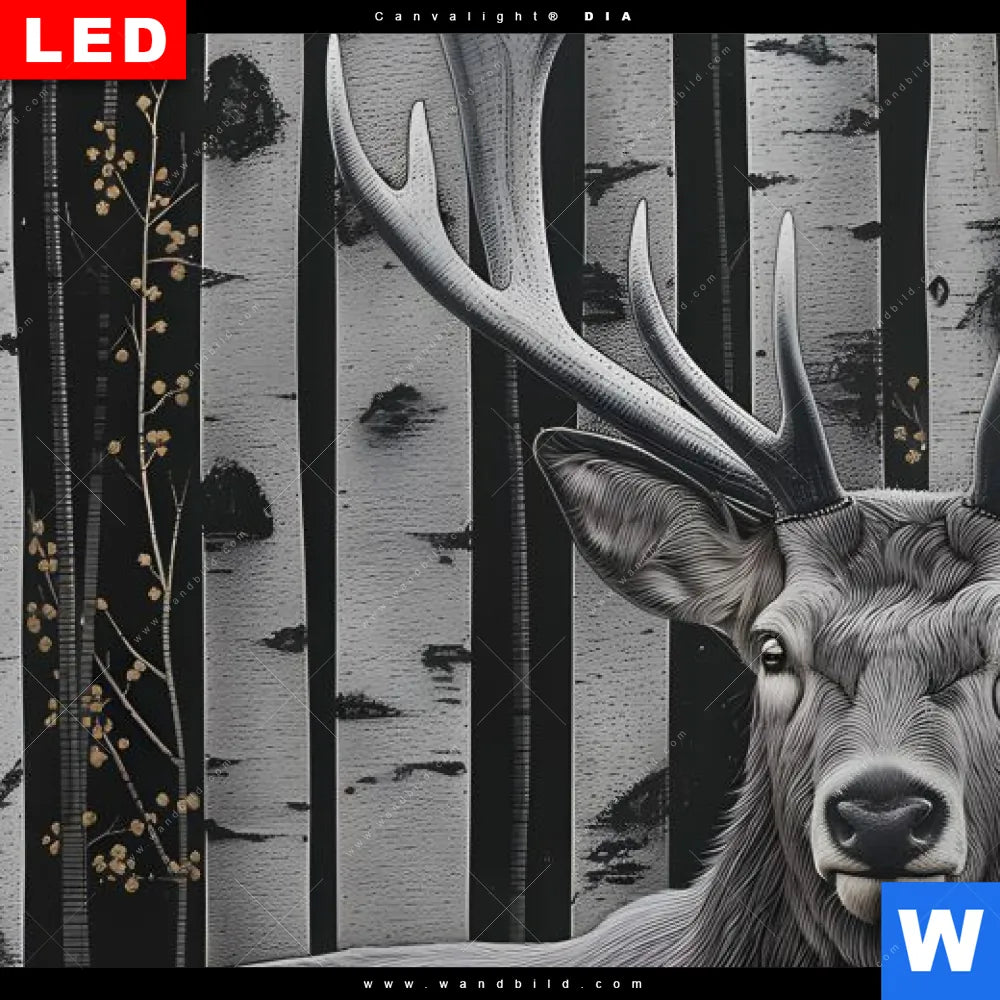 Canvalight® DIA Leuchtbild | Hirschporträt vor Birken | Panorama
