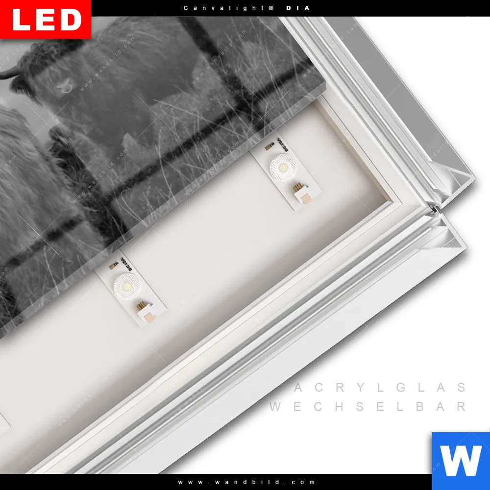 LED-Glasbild mit austauschbarem Acrylglas-Druck (Wechselbild)