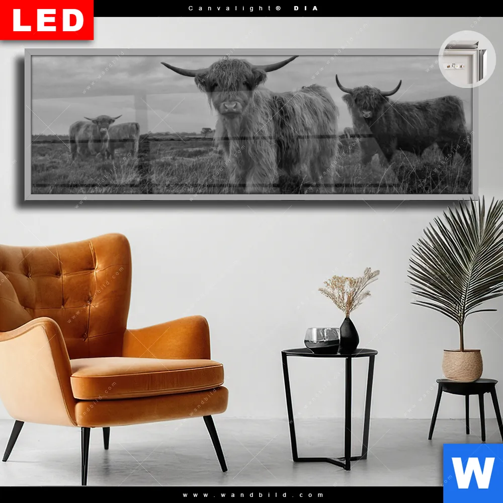 Canvalight® DIA Leuchtbild | Hochland-Rind Schwarz-Weiß | Panorama