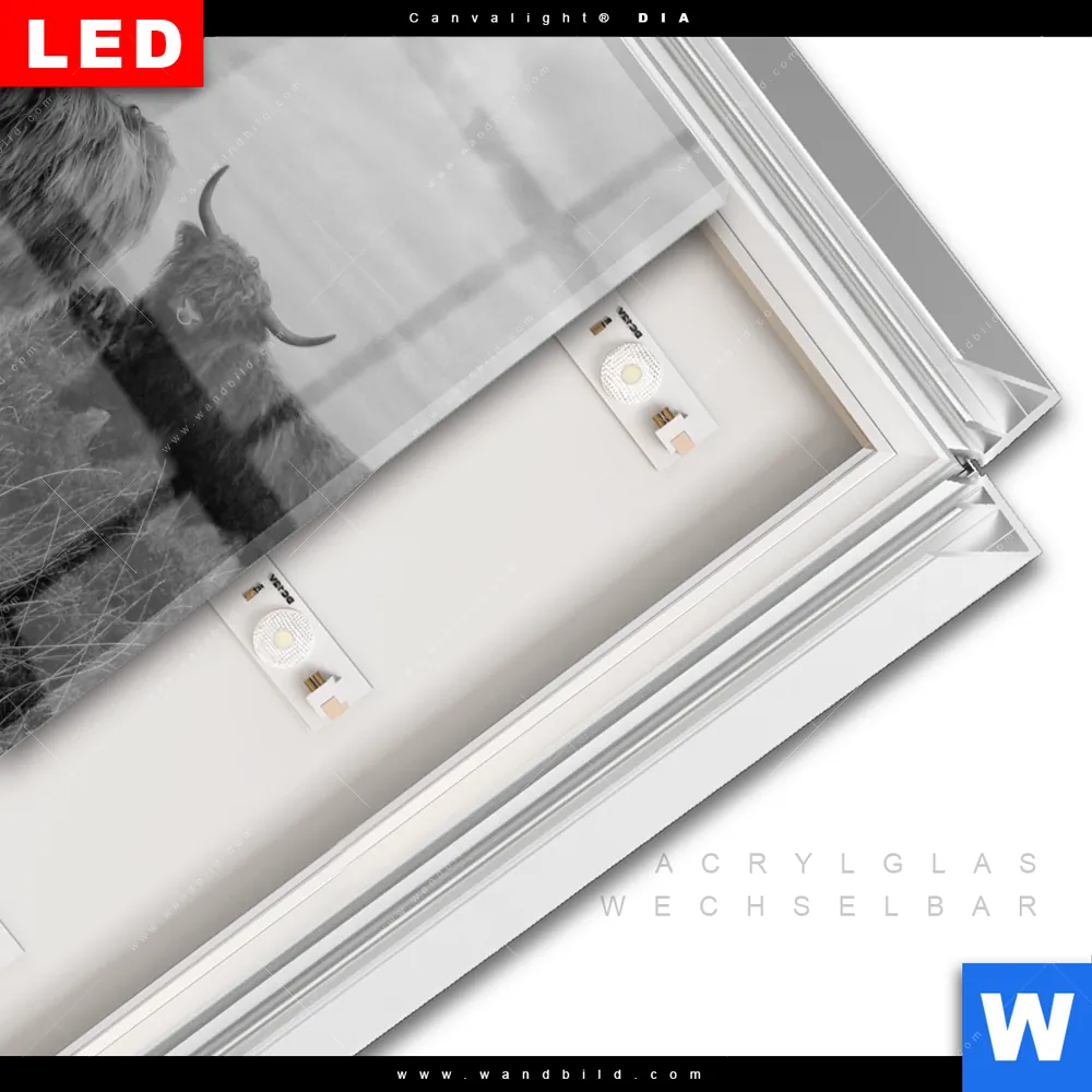 LED-Glasbild mit austauschbarem Acrylglas-Druck (Wechselbild)