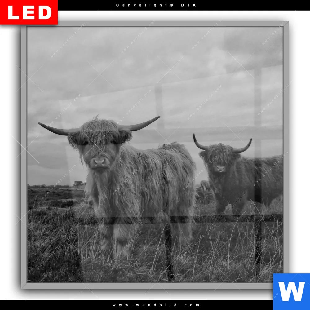 Canvalight® DIA Leuchtbild | Hochland-Rind Schwarz-Weiß | Quadrat