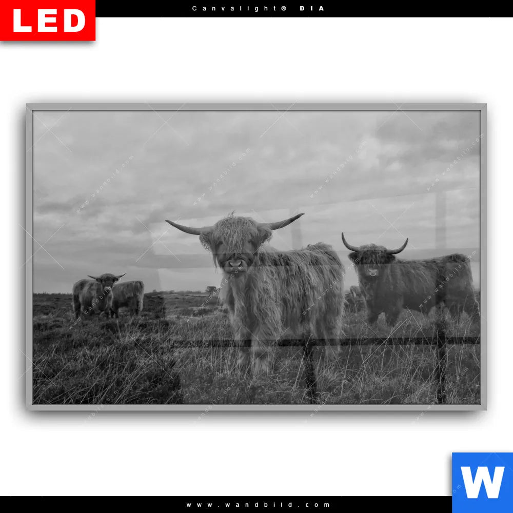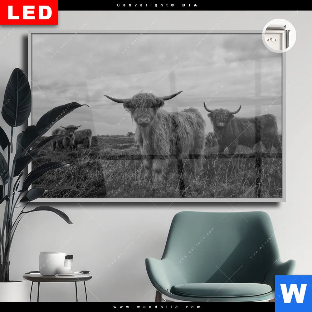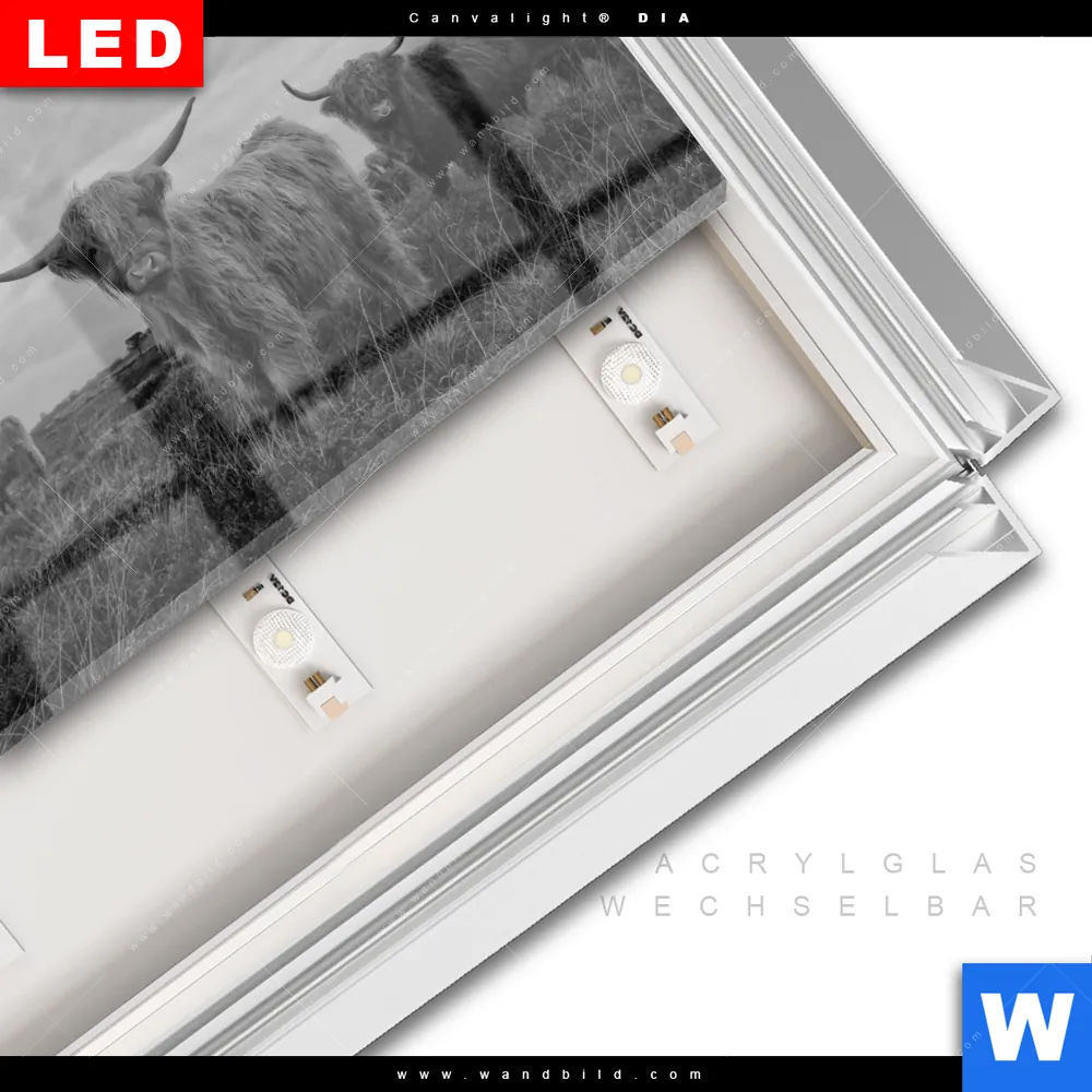Canvalight® DIA Leuchtbild | Hochland-Rind Schwarz-Weiß | Querformat