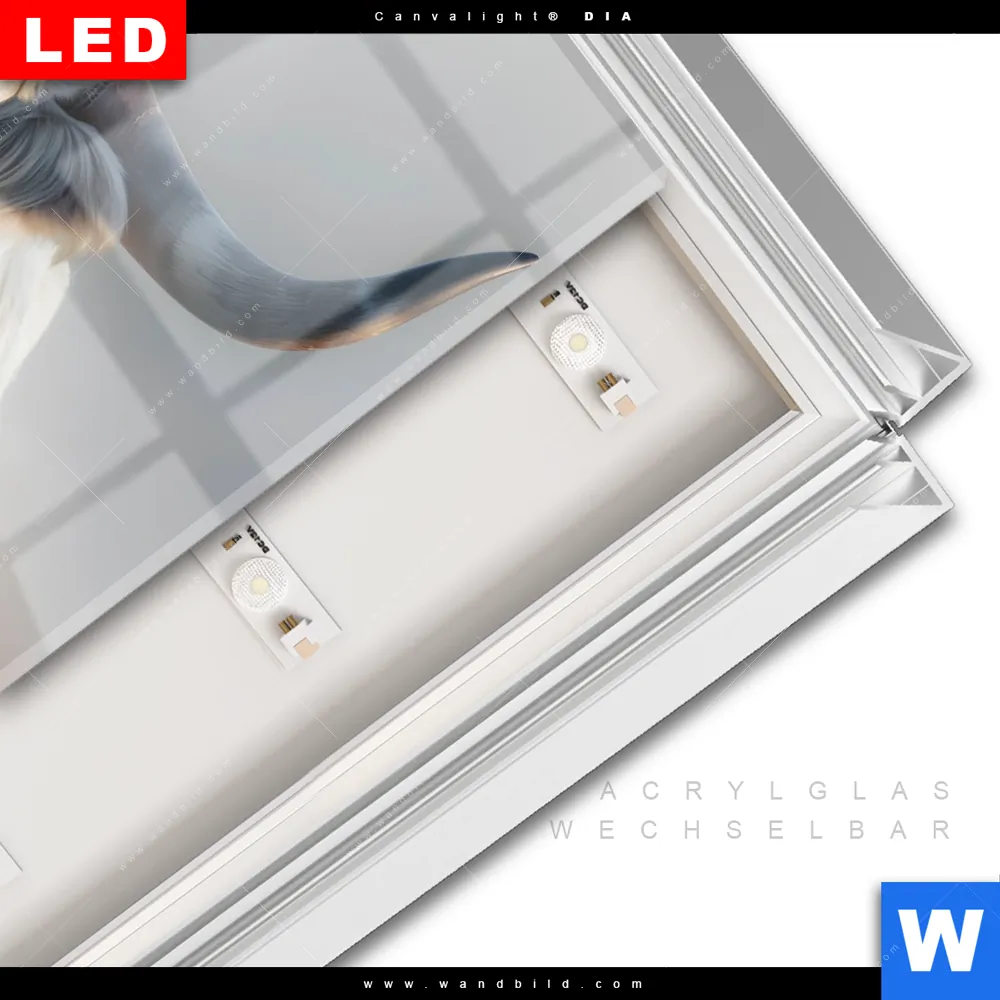 LED-Glasbild mit austauschbarem Acrylglas-Druck (Wechselbild)