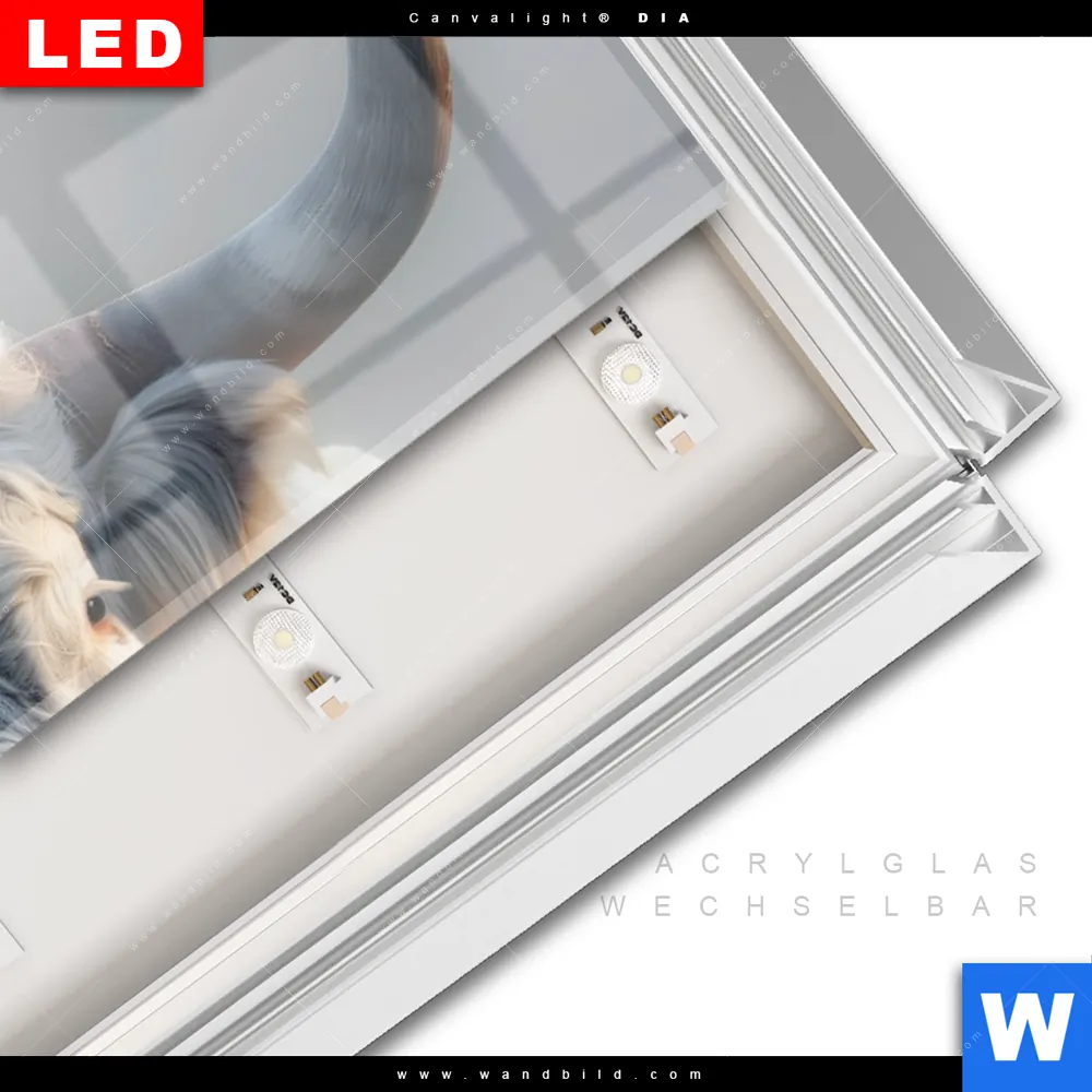 LED-Glasbild mit austauschbarem Acrylglas-Druck (Wechselbild)