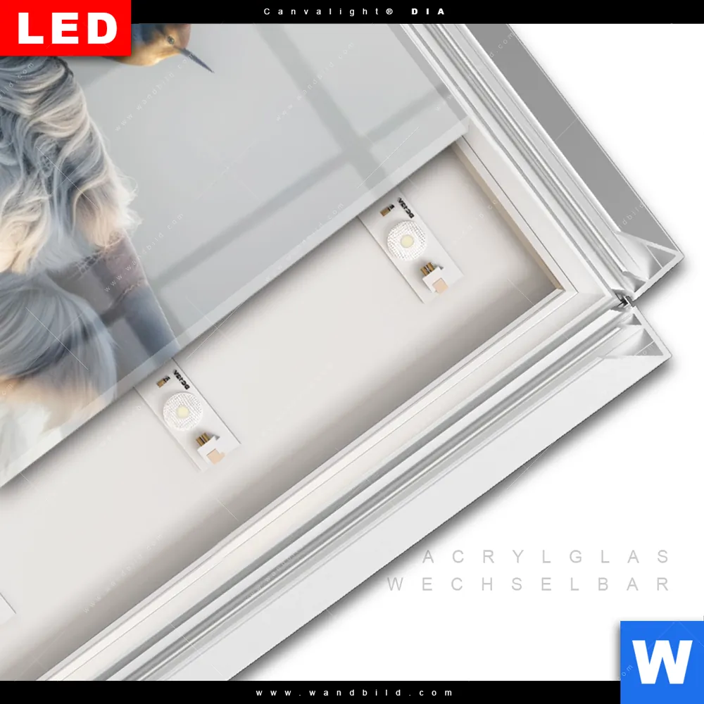 LED-Glasbild mit austauschbarem Acrylglas-Druck (Wechselbild)