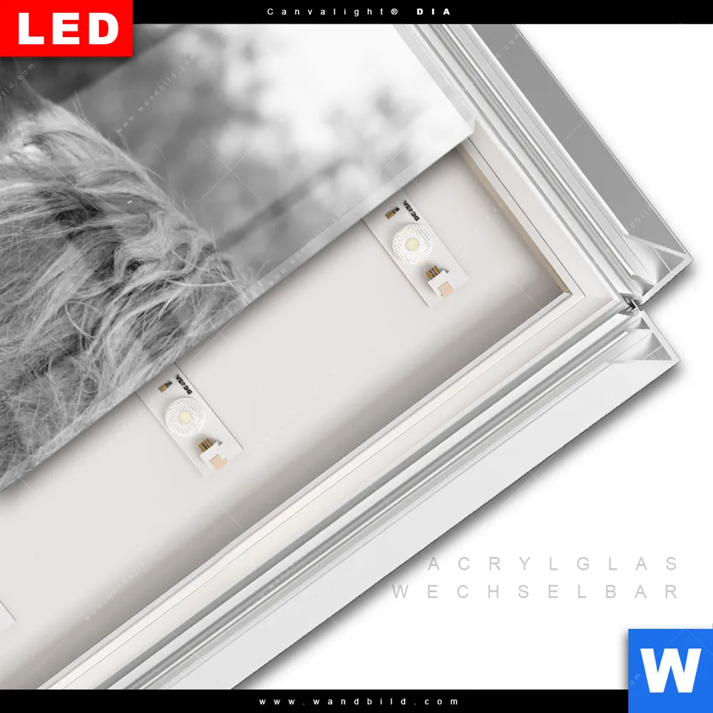 LED-Glasbild mit austauschbarem Acrylglas-Druck (Wechselbild)