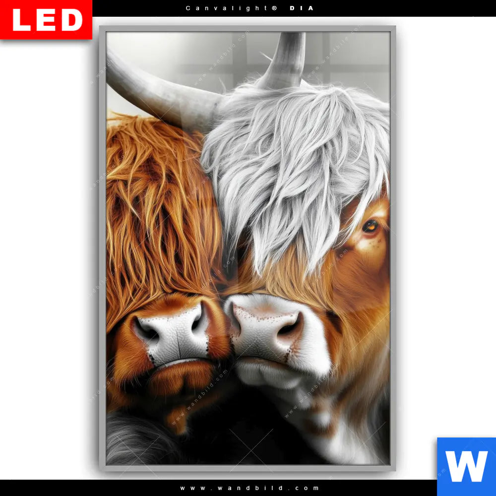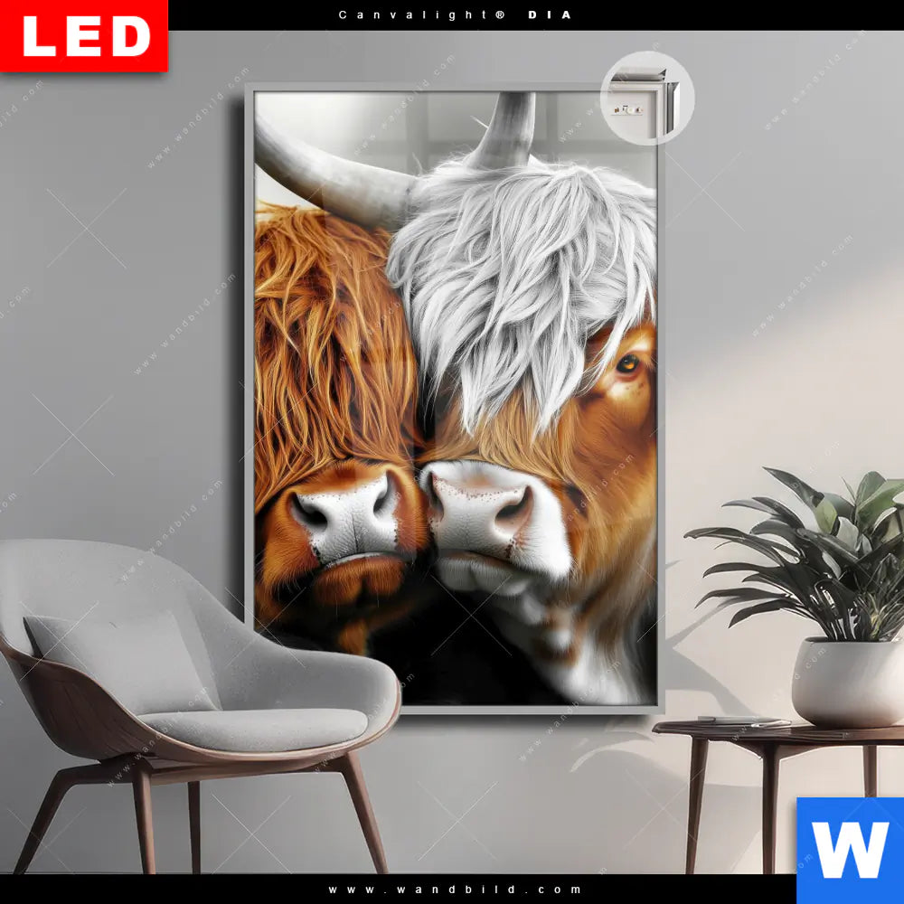 Canvalight® DIA Leuchtbild | Hochlandrinder - Harmonie der Natur | Hochformat
