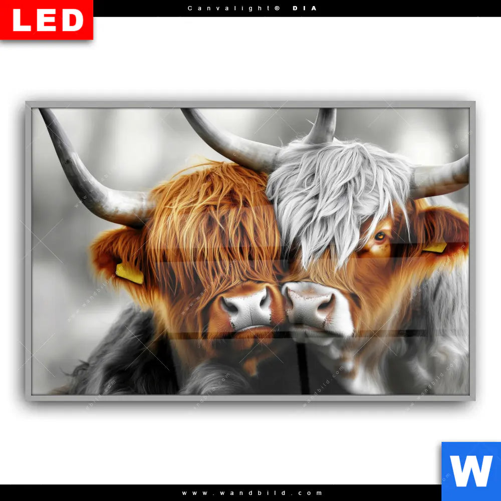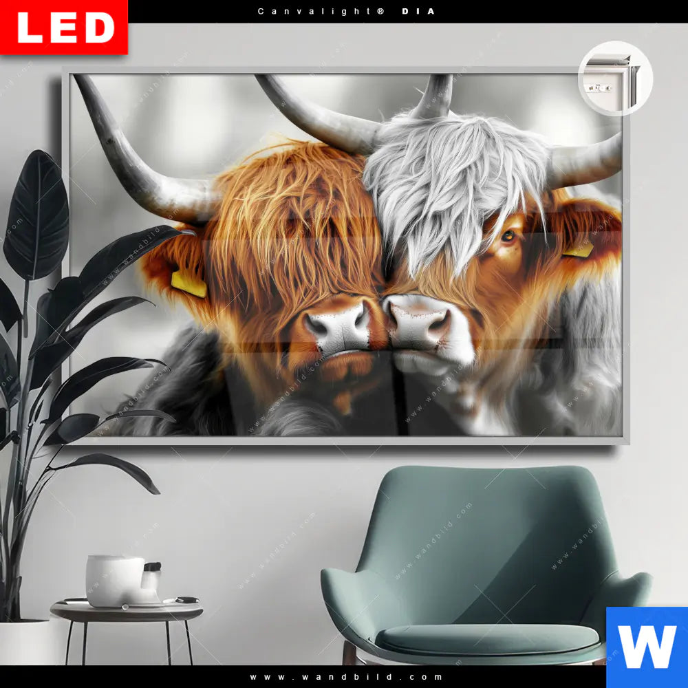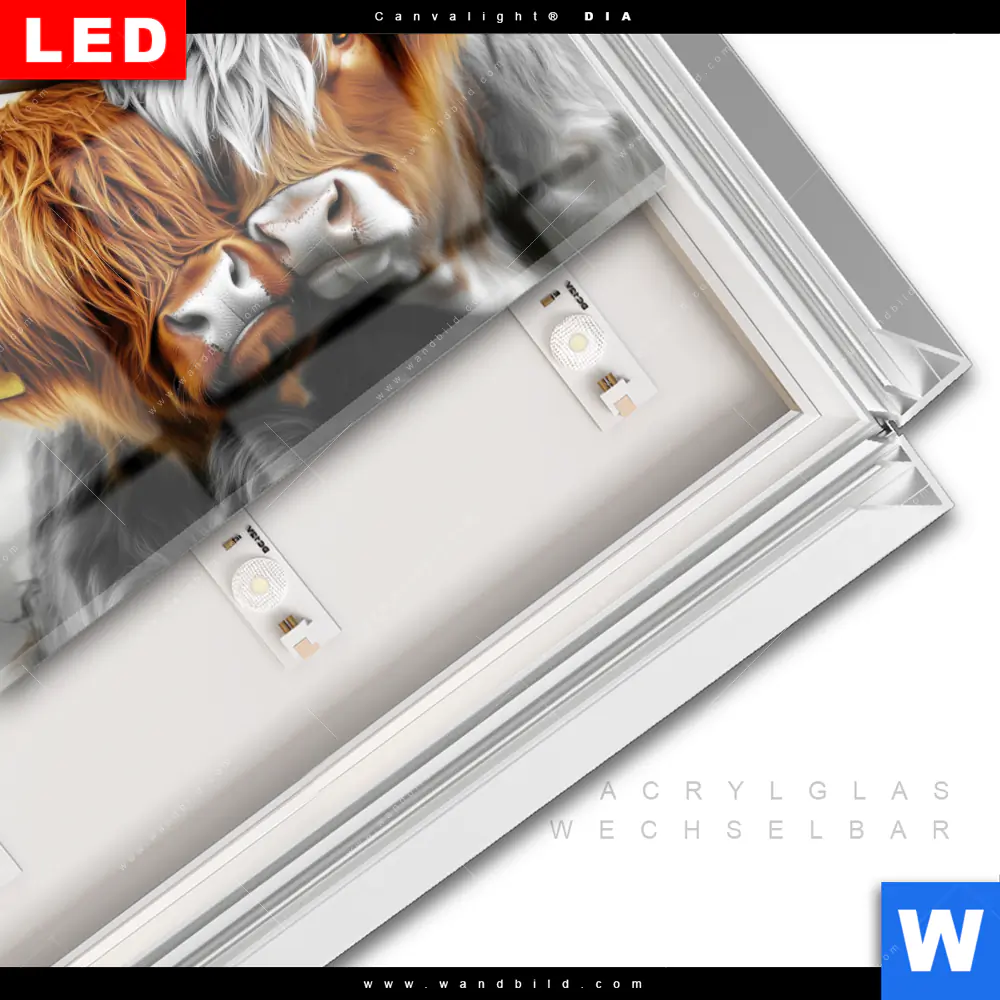 Canvalight® DIA Leuchtbild | Hochlandrinder - Harmonie der Natur | Querformat